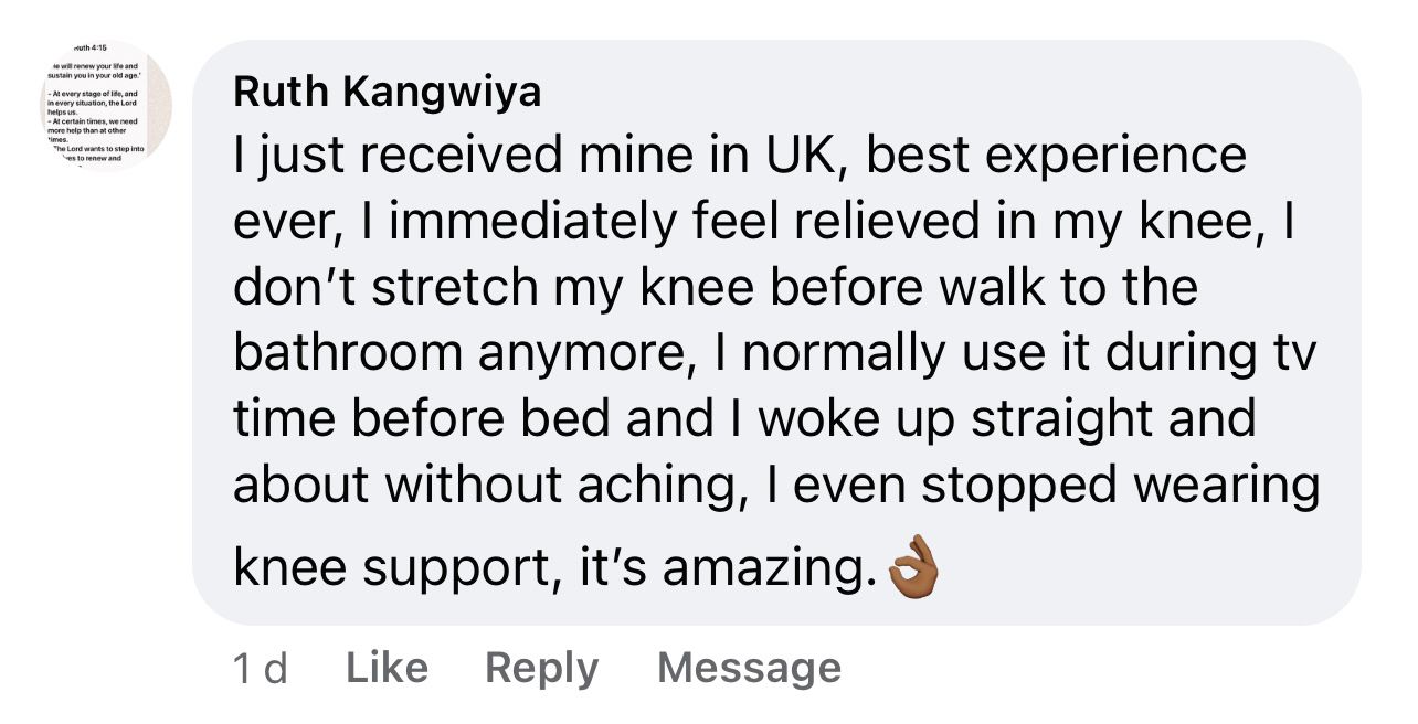 I found these guys last year and ordered one to try and offer to my patients that suffer from knee pain and don’t want surgery. I am very happy to say that for 9/10 it works and helps them to relieve pain and make them love life again. I ordered 5 more with a great deal to treat my patients and I recommend this product for everyone that is diagnosed with arthritis, osteoarthritis, knee muscle injuries, etc.